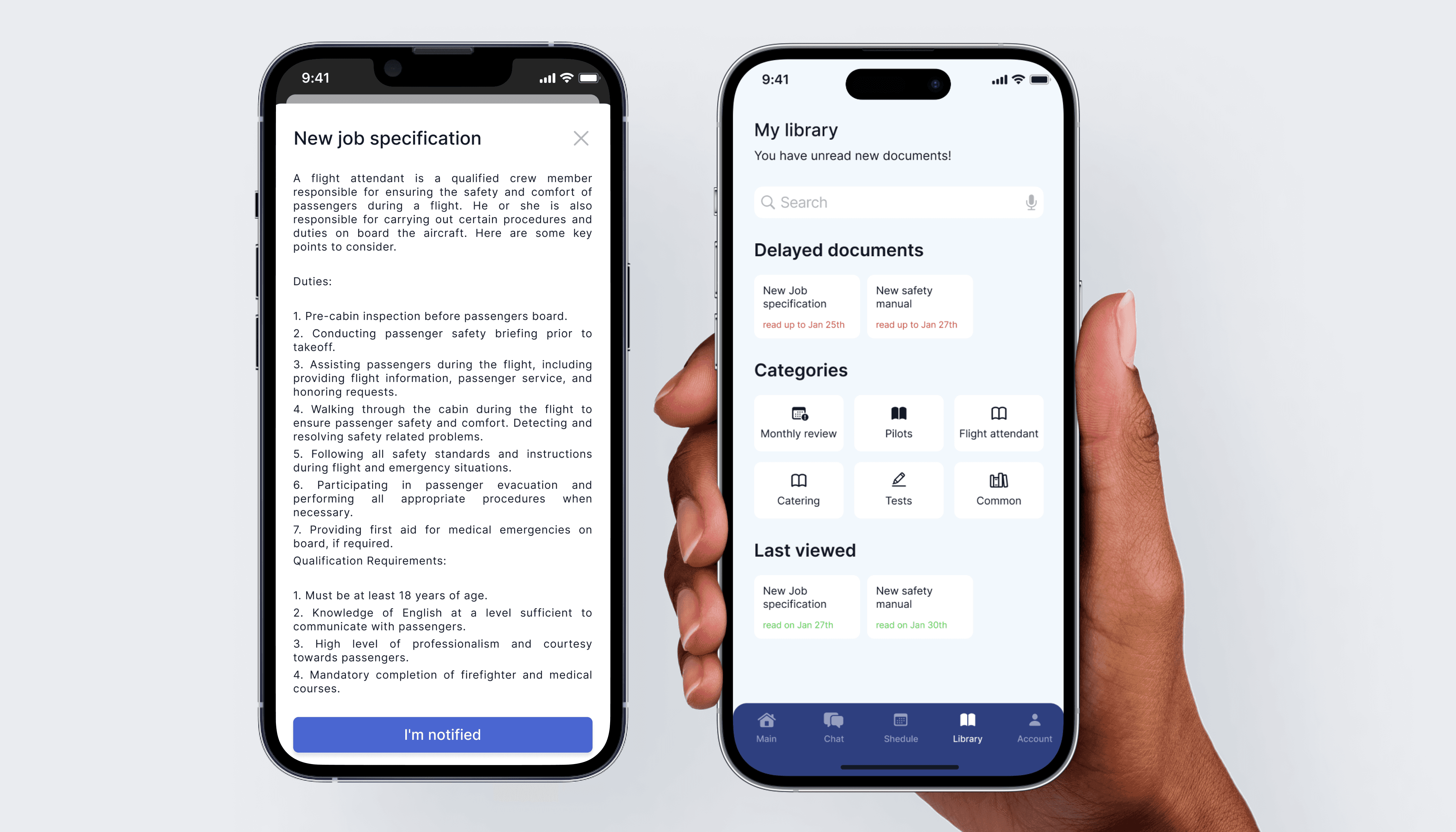 In the Library section, you will find all documents of the airline, get acquainted with the latest news, find all the information about aircraft construction, work and job instructions. If necessary, you can take tests. Thanks to widgets, you can track the dates of familiarization with new documents.
