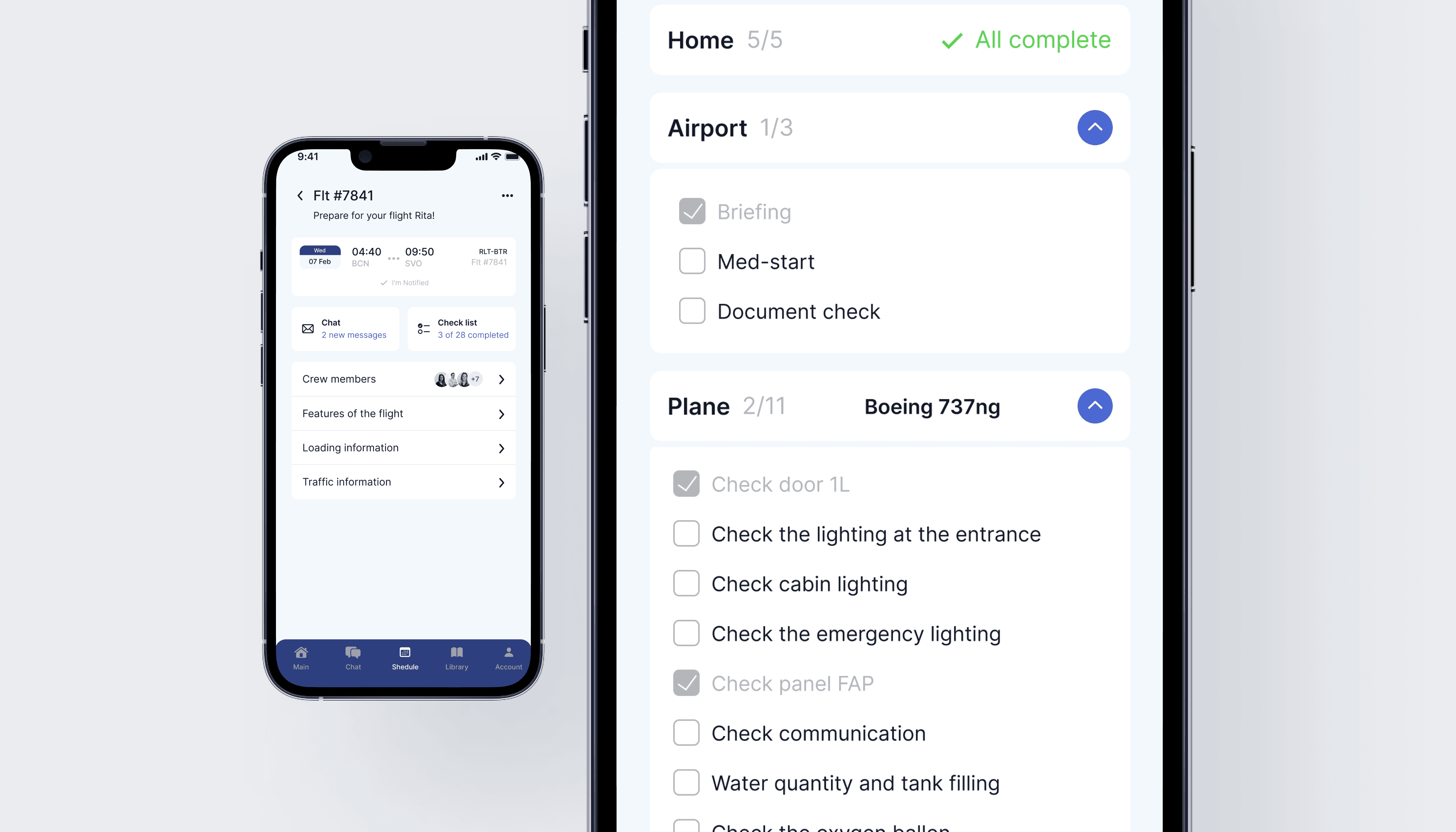 In the flight section, you can find all detailed information: learn about the crew composition, flight peculiarities, loading information, and write a message to a colleague. Before each flight, for convenience of work and preparation, a checklist has been created. The checklist helps to go through all the necessary procedures before and after the flight.