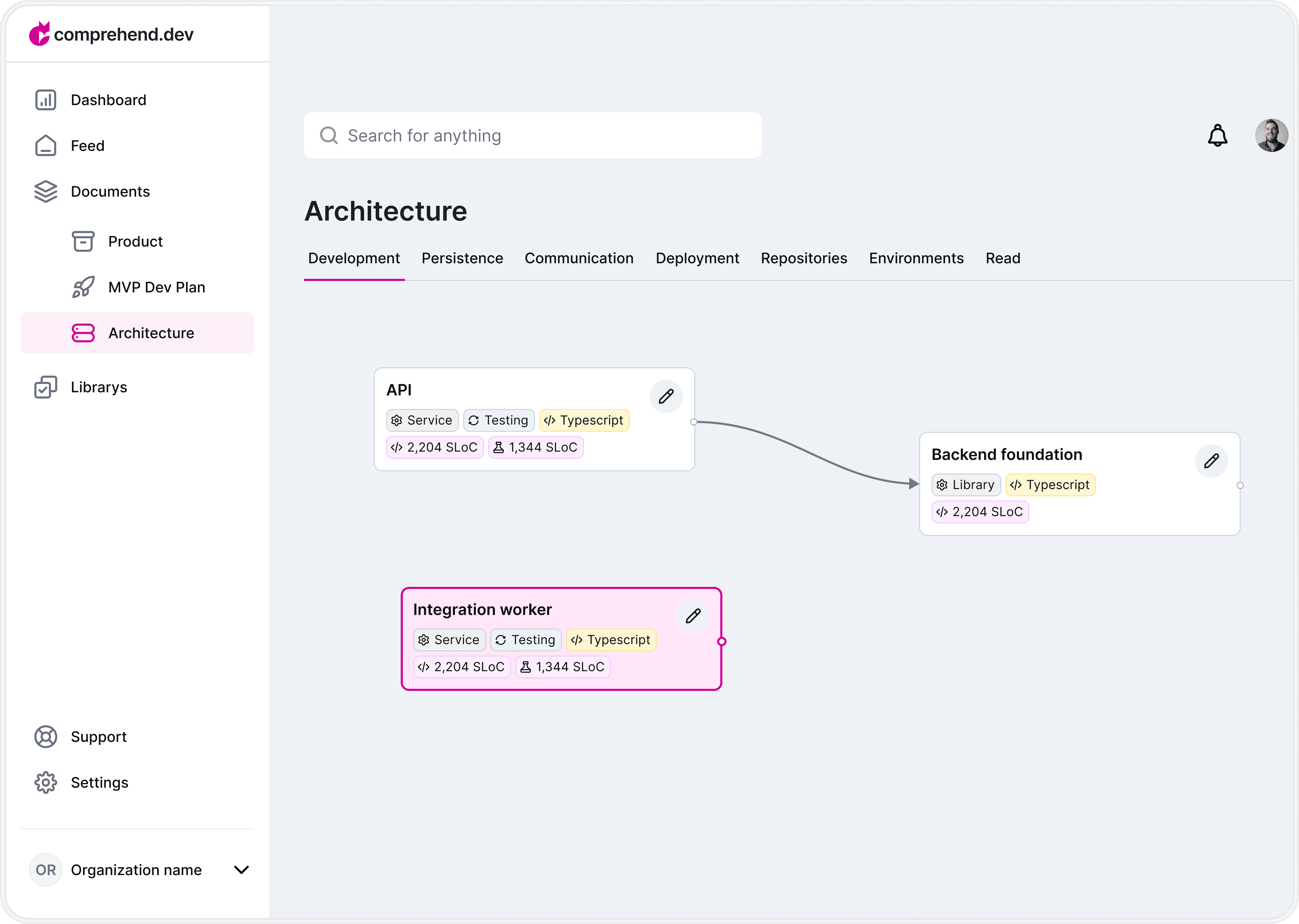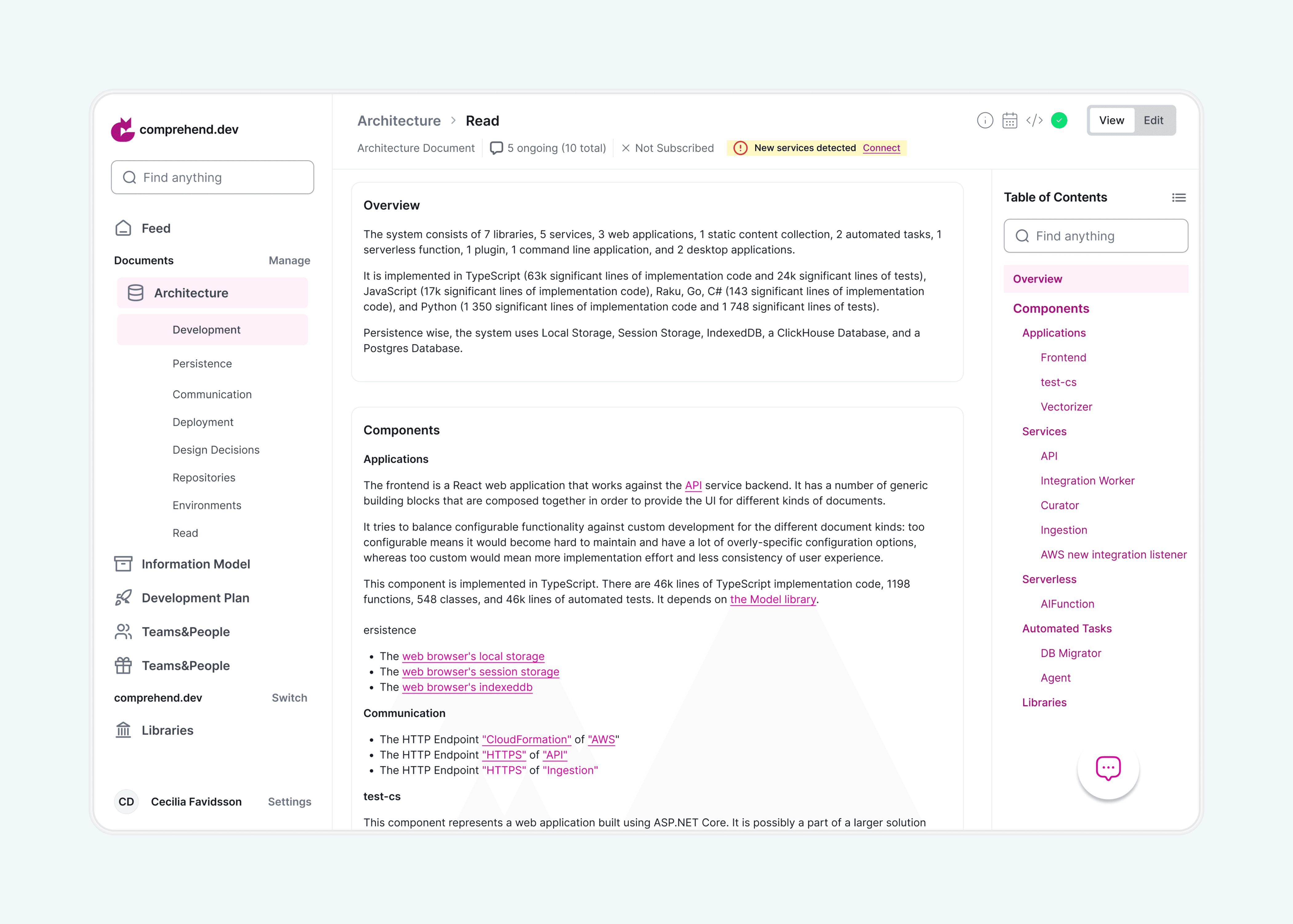 Comprehend.dev is a B2B platform that helps teams understand and manage complex software systems by connecting architecture, documentation, and product knowledge in one place. It supports collaboration between developers, product teams, and technical stakeholders working on large and evolving products.